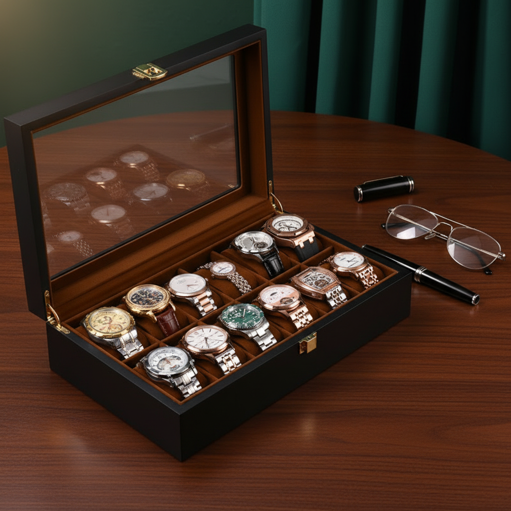 ☘ Hộp có mặt kính có thể nhìn thấy kính bên trong.