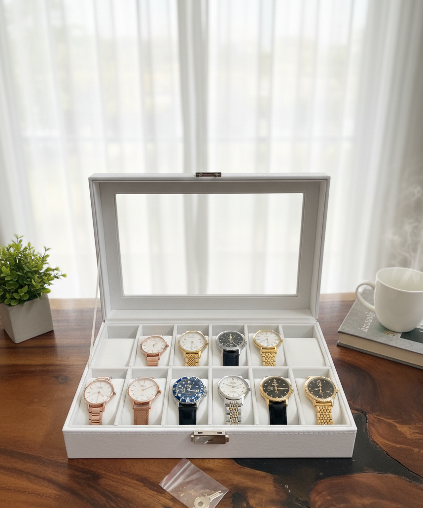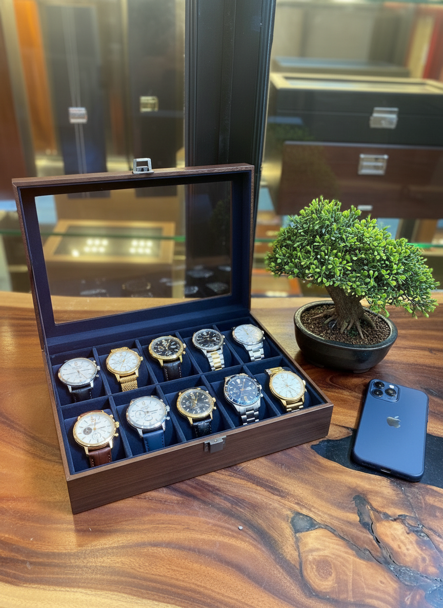 Hộp đựng đồng hồ này không chỉ là nơi để bảo quản đồng hồ, mà còn là một món đồ trang trí sang trọng, giúp bạn thể hiện đẳng cấp và sở thích cá nhân.