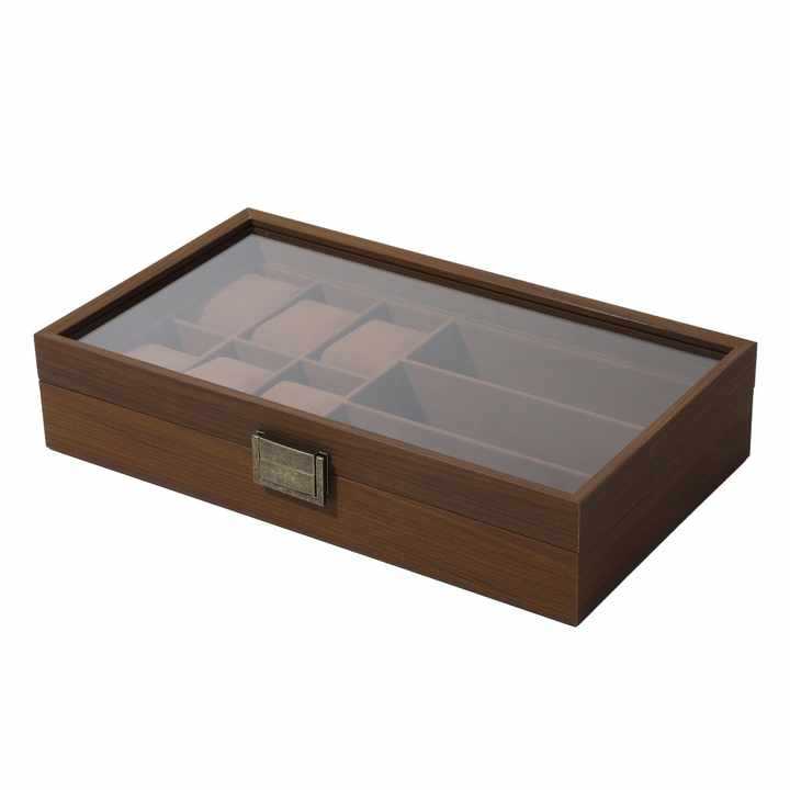 - Nắp kính trong suốt: dễ dàng quan sát, trưng bày đồng hồ và mắt kính gọn gàng.