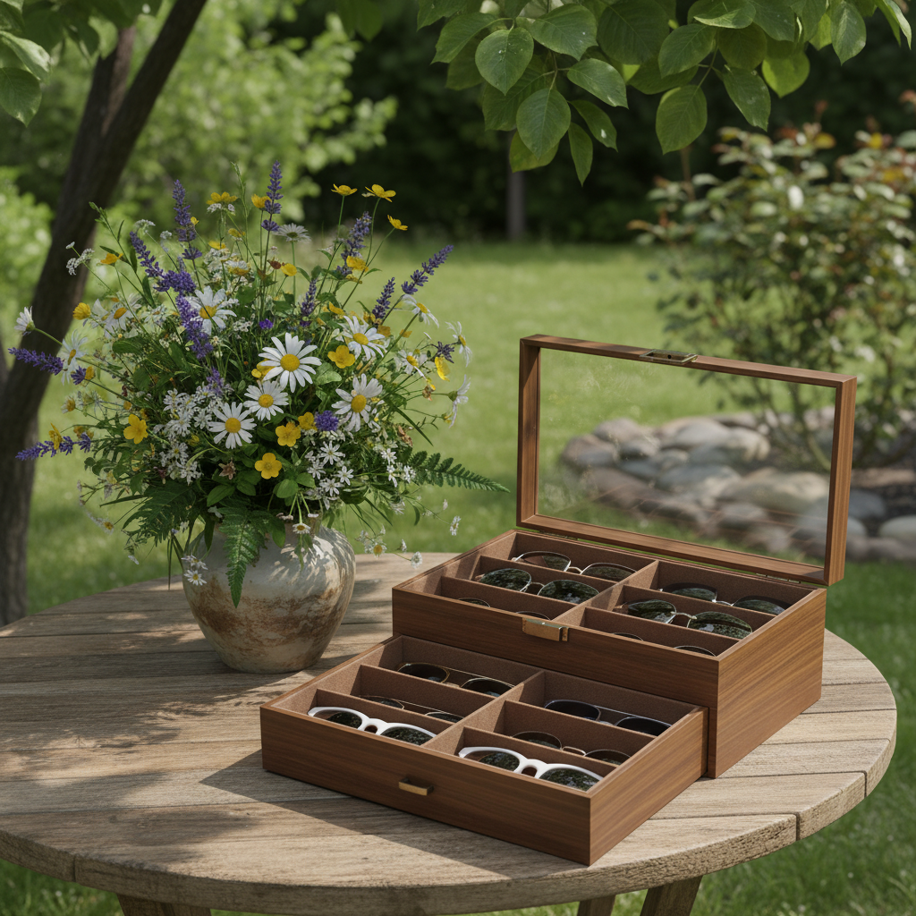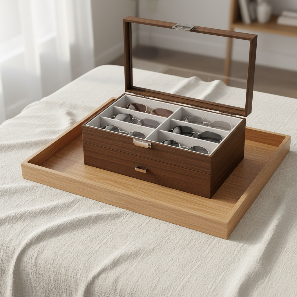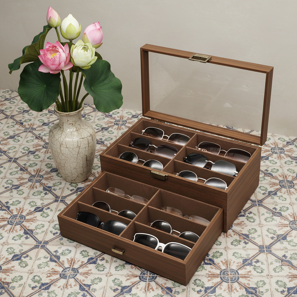 Hộp không chỉ để đựng kính mà còn giúp tăng tính thẩm mỹ cho bàn trang điểm, tủ đồ hoặc kệ trưng bày.