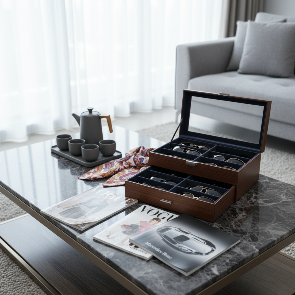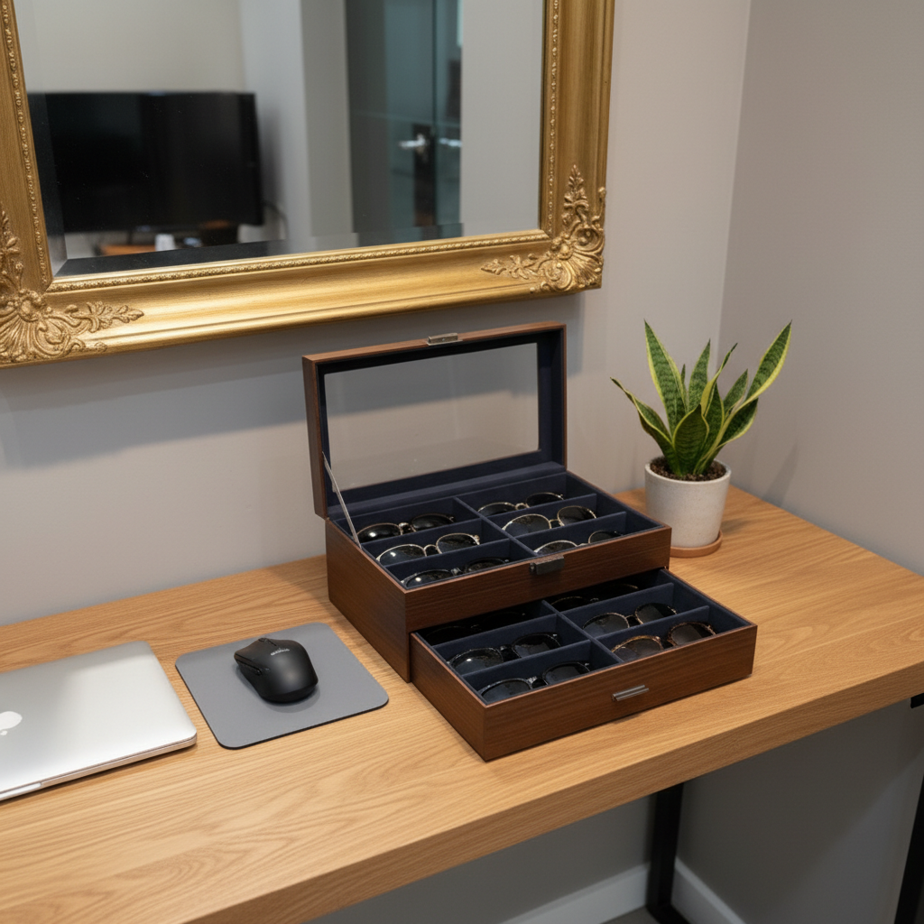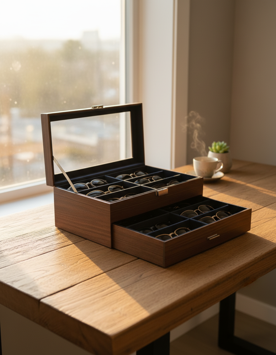 Hộp đựng kính 2 tầng cao cấp là sự kết hợp hoàn hảo giữa chức năng bảo quản và giá trị thẩm mỹ.